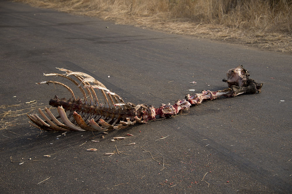 Proceeding further down the road at Kumana Dam we come across the remains of a giraffe in the road.
