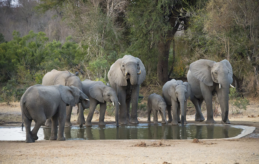 De Laporte Waterpoint 8km from Skukuza out along the road to Pretoriuskop H1-1 is this water trough – so beautiful in the late evening light. How pleasant to enjoy one’s coffee whilst watching the passing show.