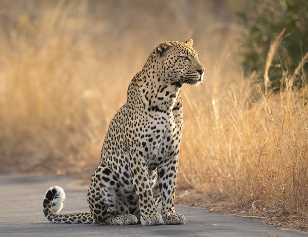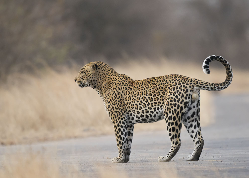 Late afternoon and where the NE end of the Maroela Loop S83 rejoins the main H1-2, we come across this beautiful male leopard.