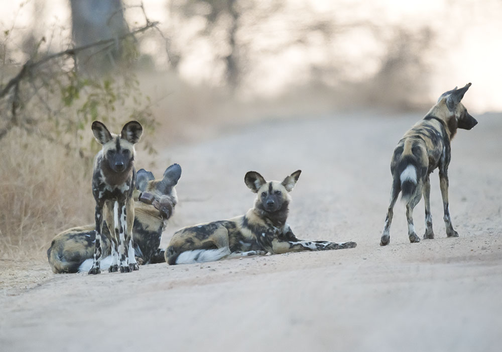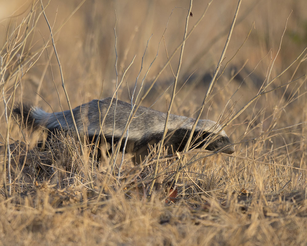 Ratels (Honey Badgers) are usually so difficult to photograph. This one kept moving behind grass and eventually scuttled over the road right next to us.