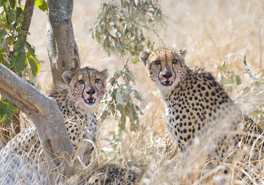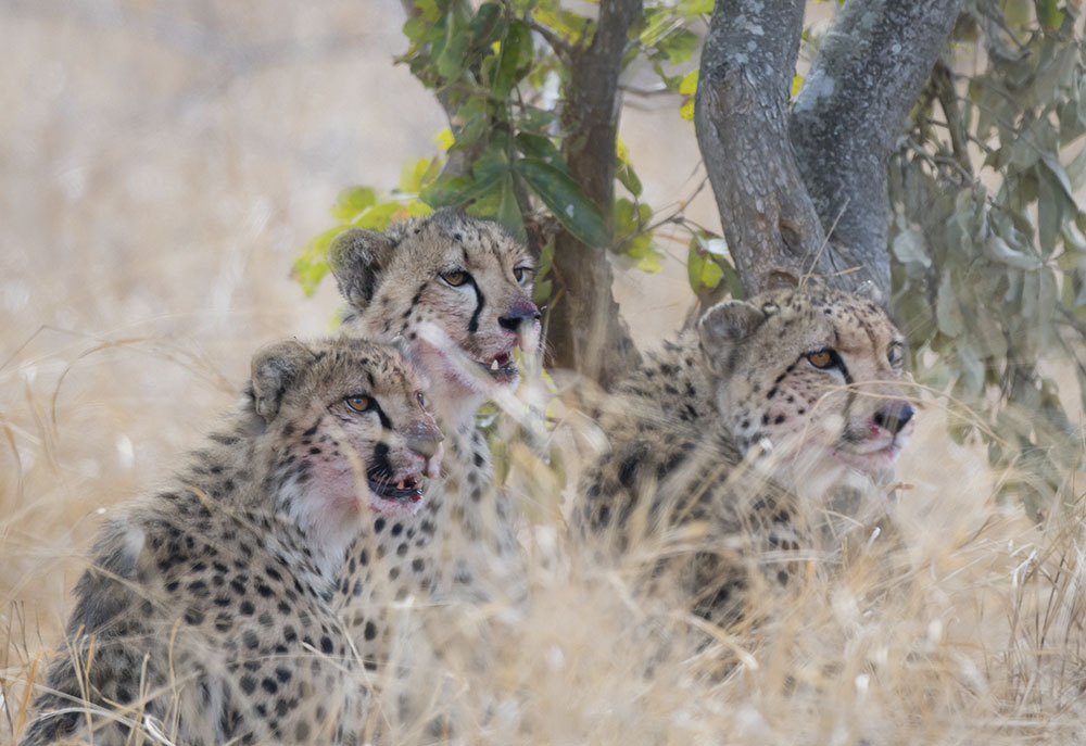 Near Maziti Dam three cheetah have just feasted off their own kill.